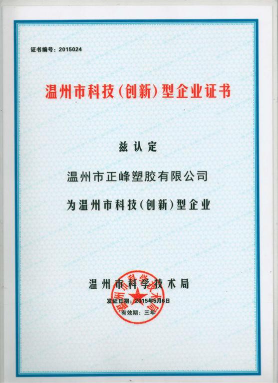 溫州市科技(創新)型企業證書